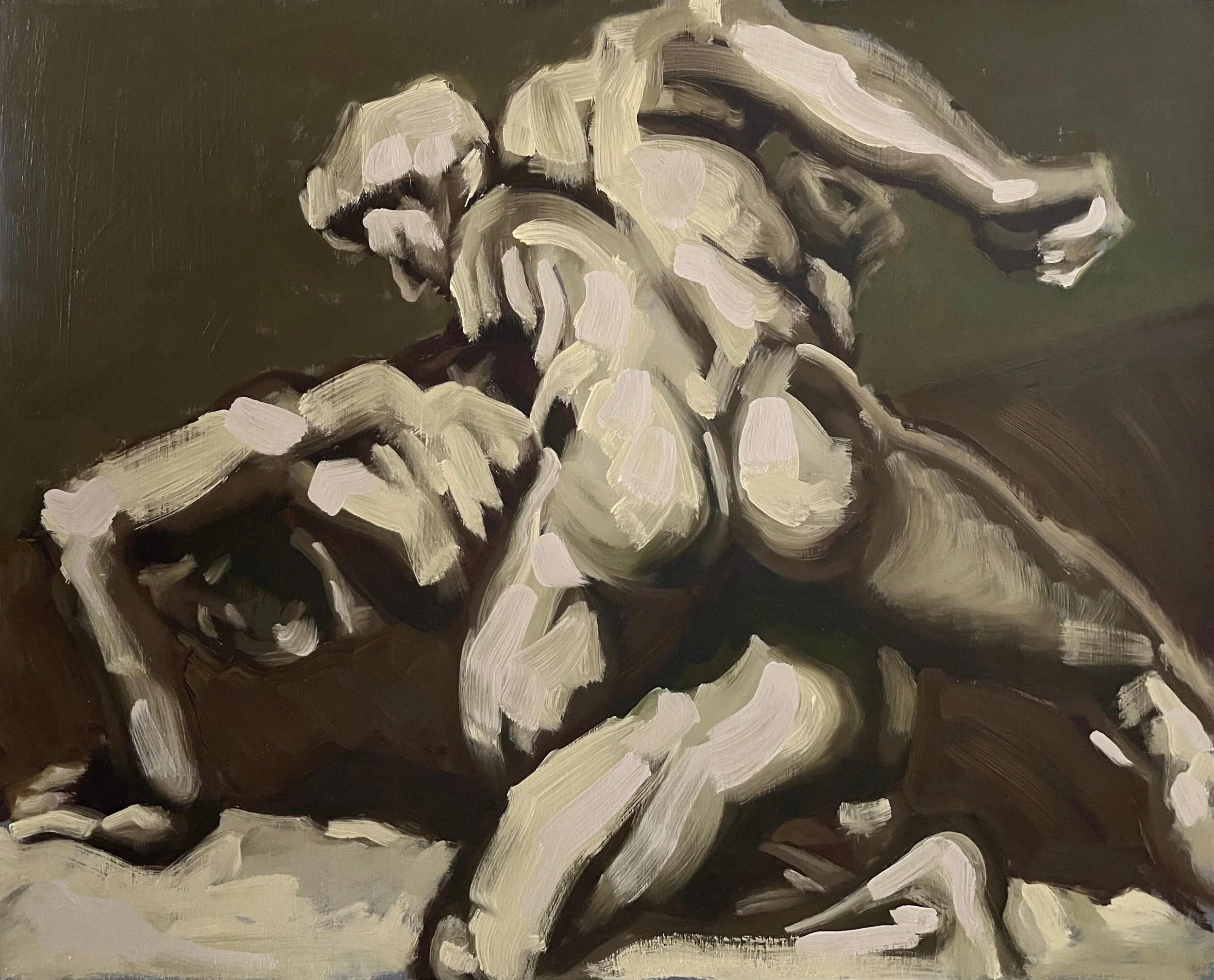 Uffizi Wrestlers, 2022. Oil on Ampersand Gessoboard. 16x20"