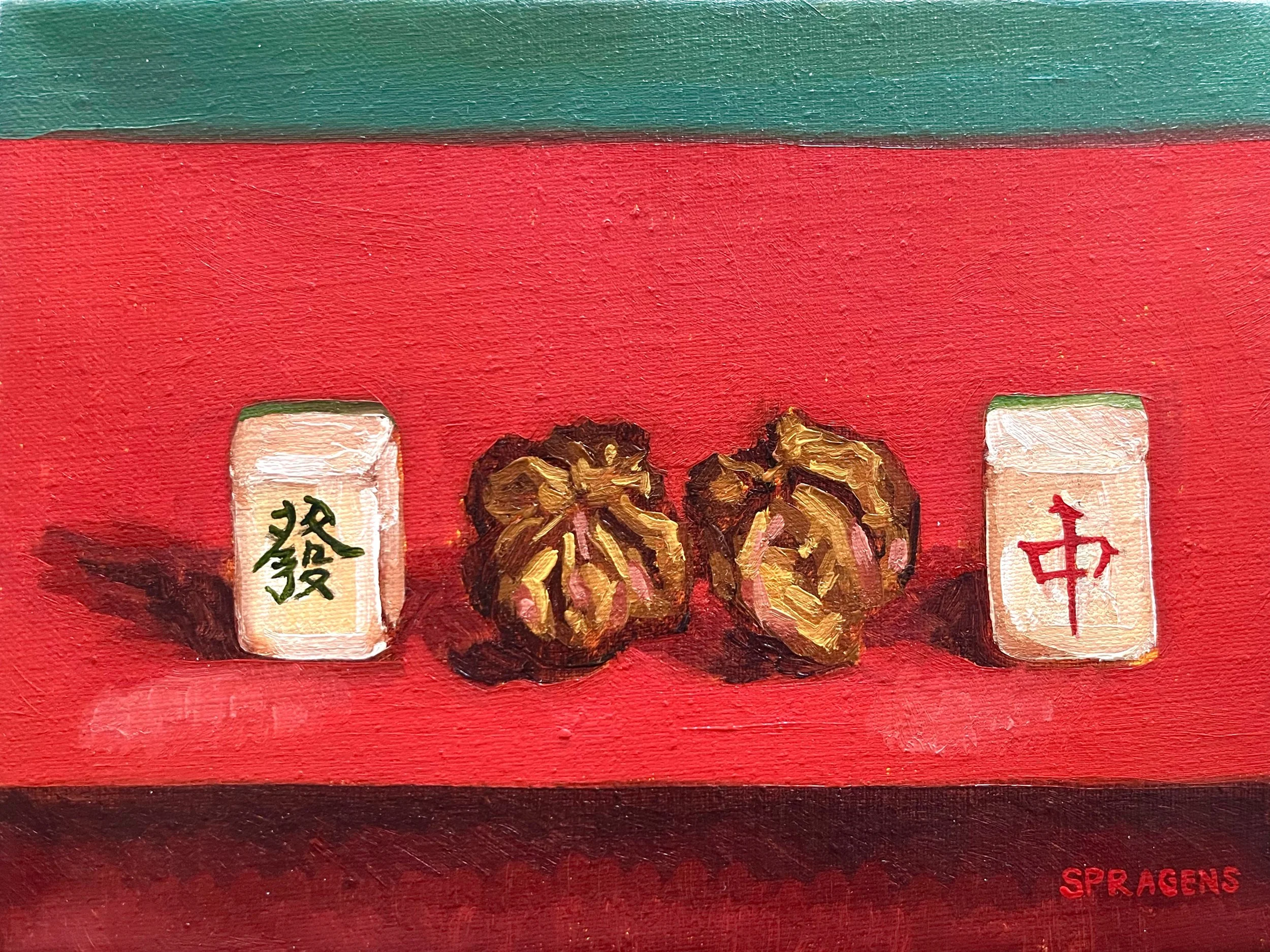 Gu Shu Shu's Majiang, 2024. Oil on linen. 6x8"