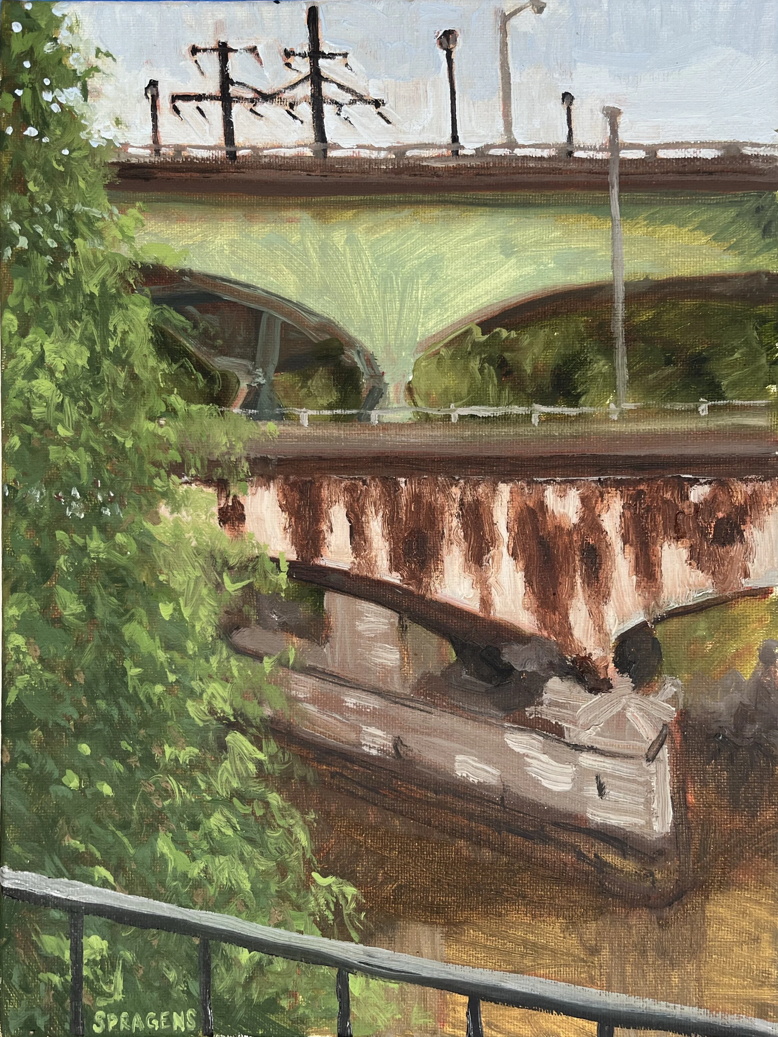Bridges Over The Schuylkill, 2022. Oil on canvas. 9x12"