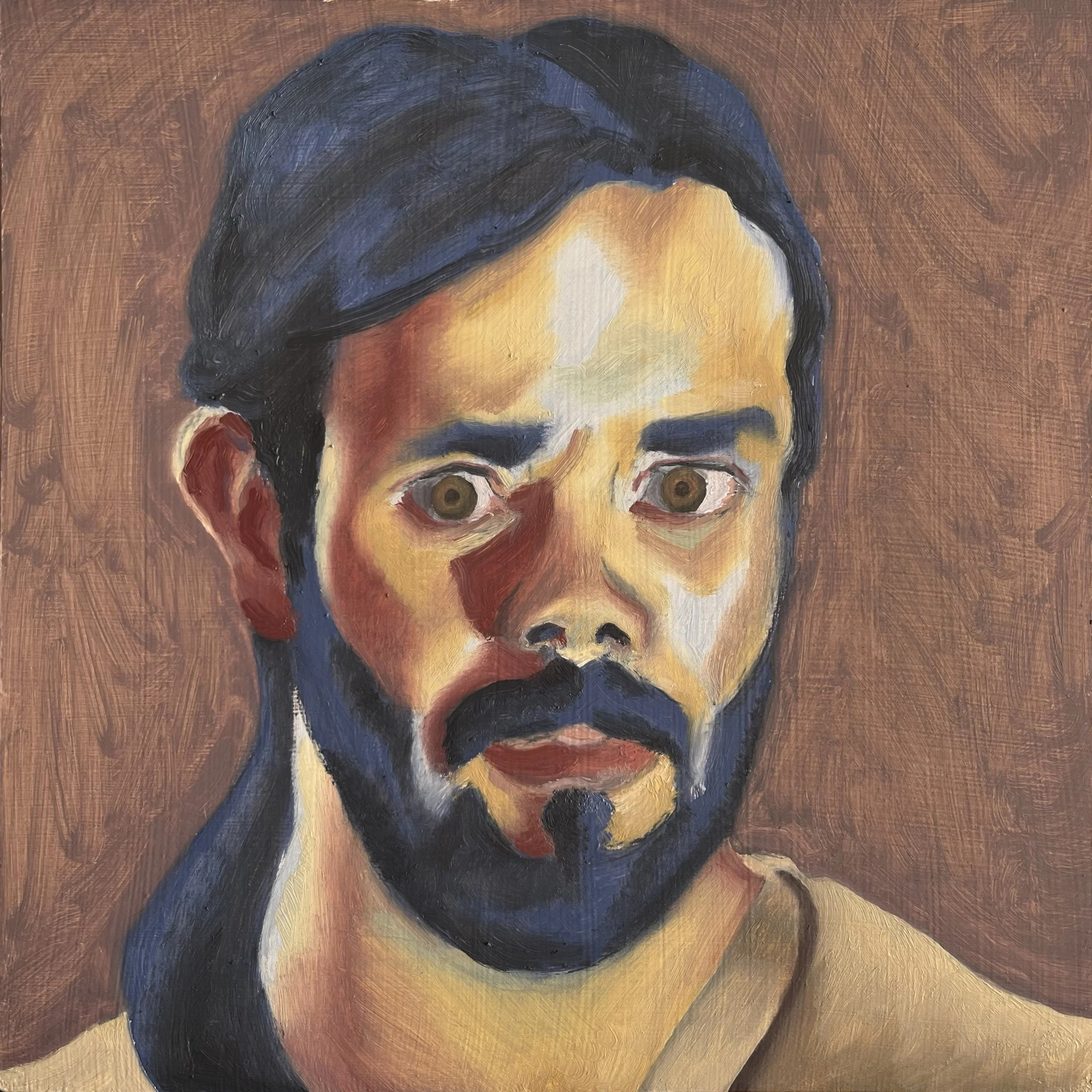 Self-Portrait January 2022. Oil on panel. 8x10"