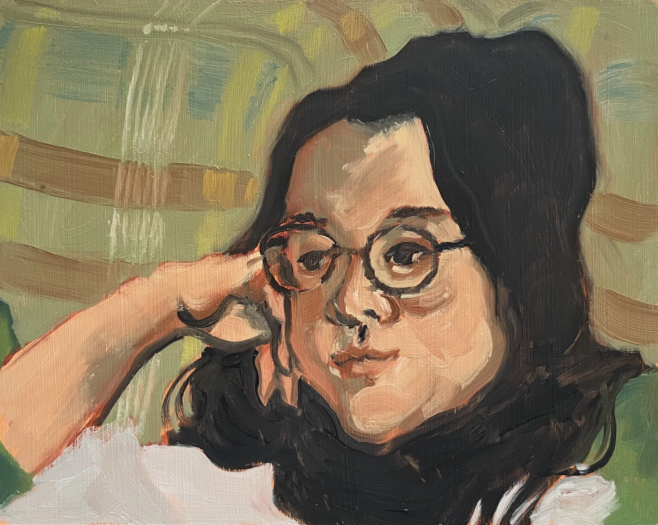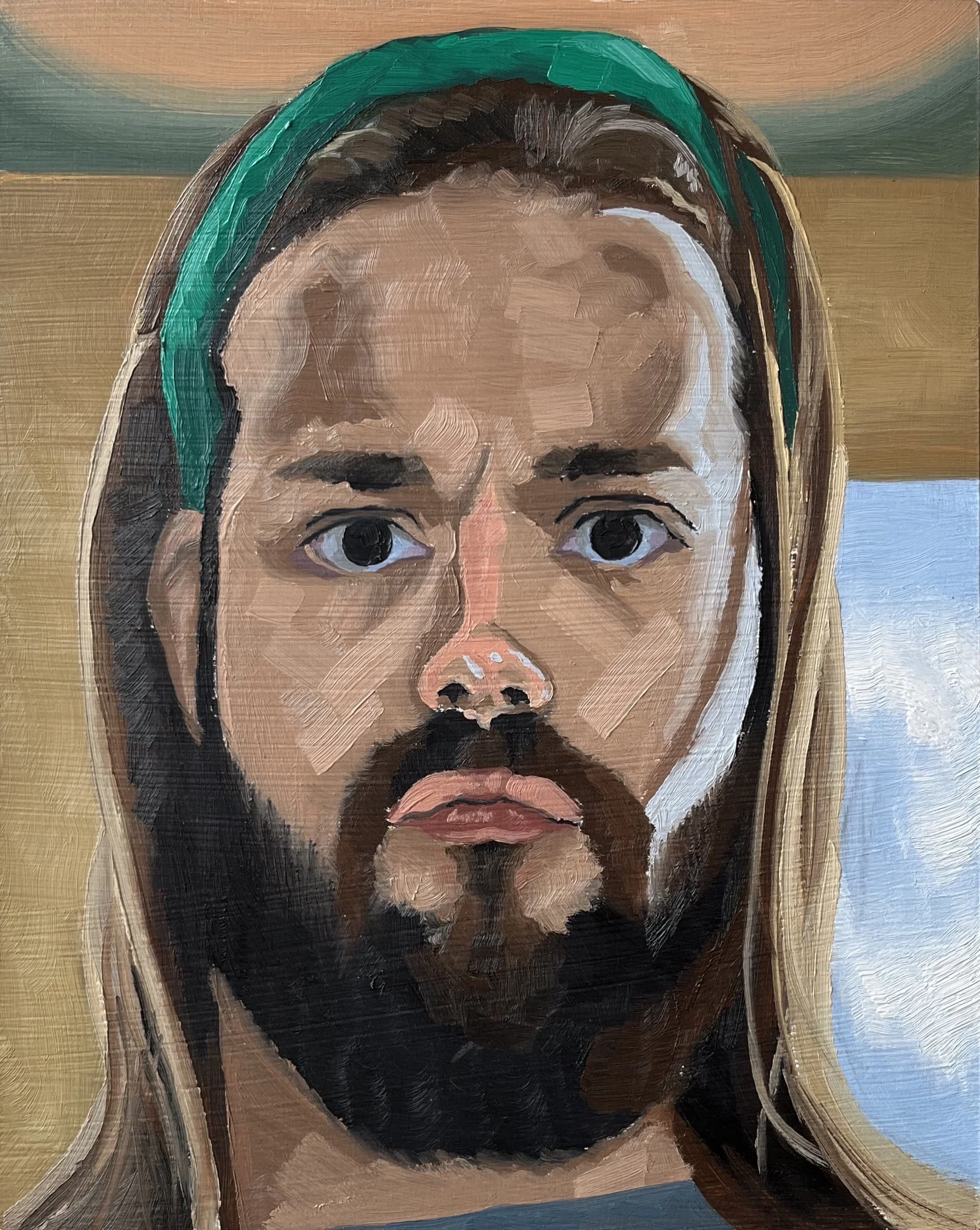 Self-Portrait In Green, 2023. Oil on canvas. 12x16"